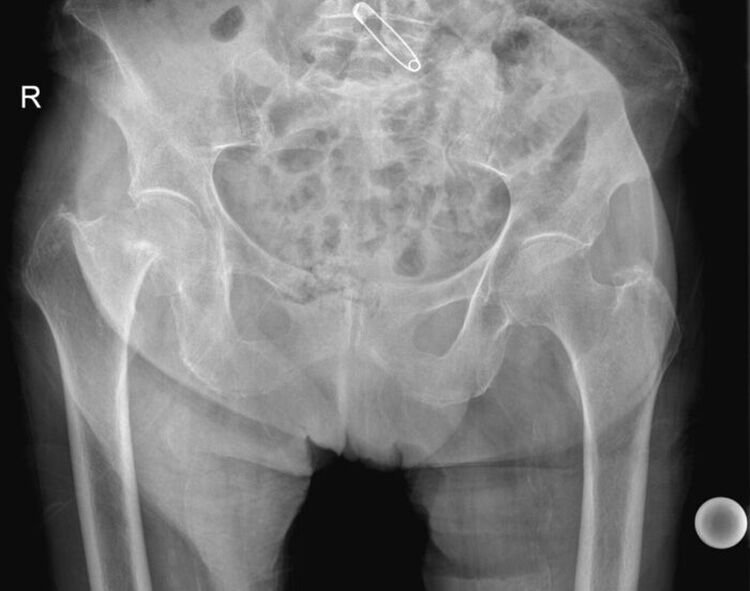 74χρονη ασθενής είχε μια πτώση όπως έβγαινε από το αυτοκίνητο. Κατά την πτώση υπέστηενα διατροχαντήριο κάταγμα του δεξιού μηριαίου. Διακομίστηκε στο τμήμα επειγόντων περιστατικών όπου και διαπιστώθηκε το κάταγμα μετά από